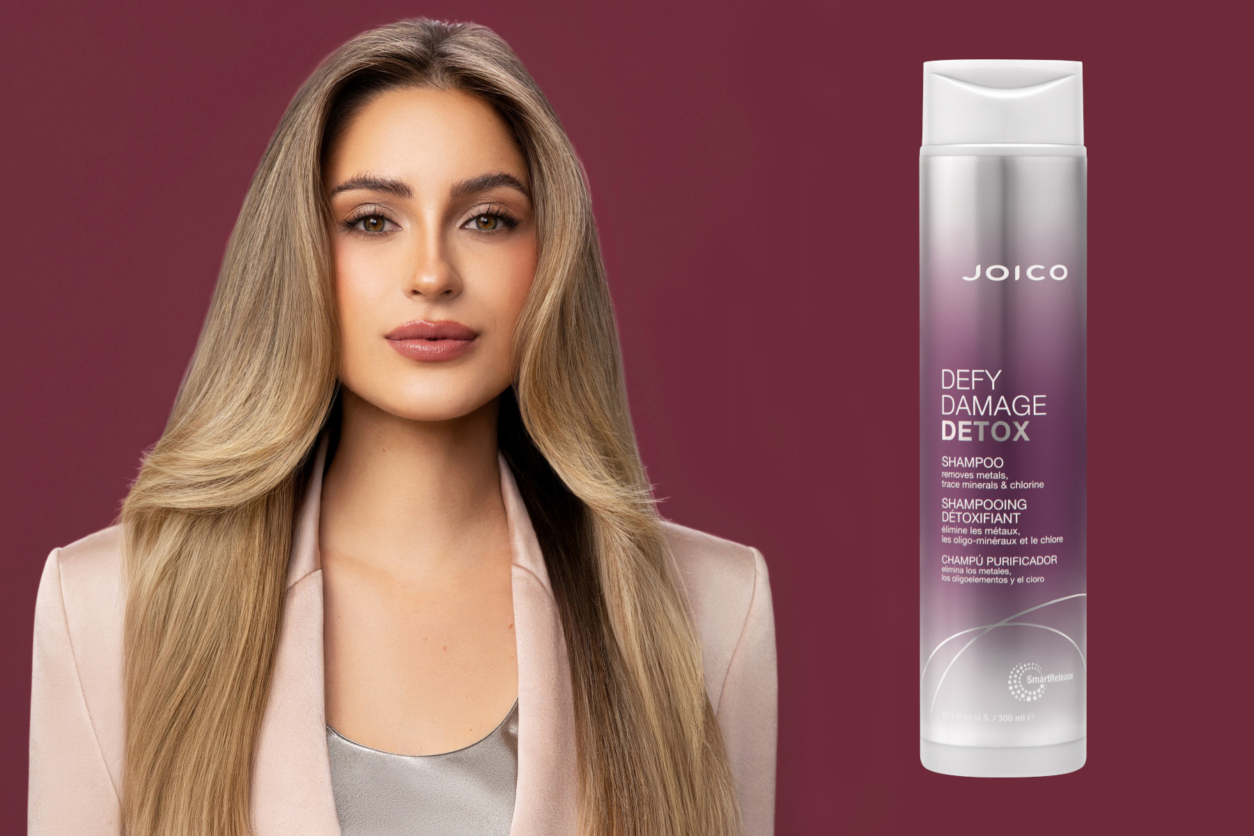 Use Defy Damage Detox Shampoo twice monthly to keep hair free of product and hard water buildup that can leave it feeling rough and looking dull.